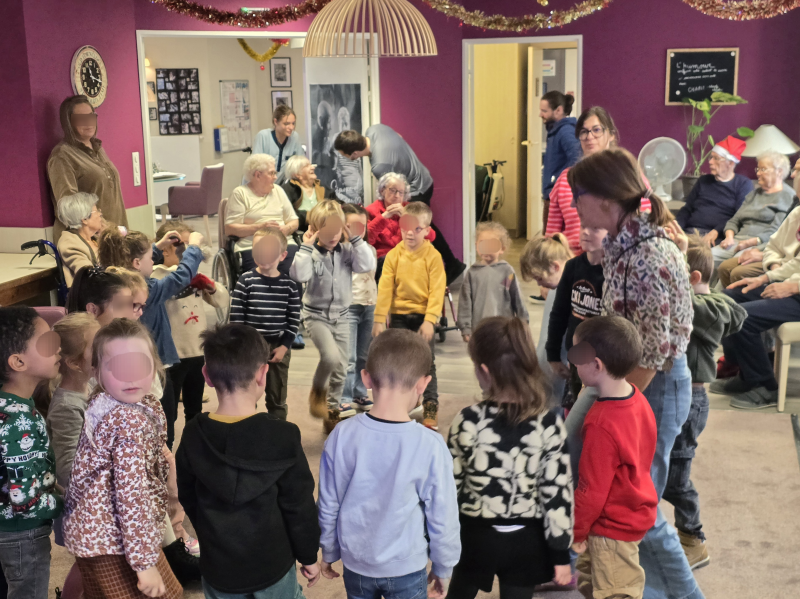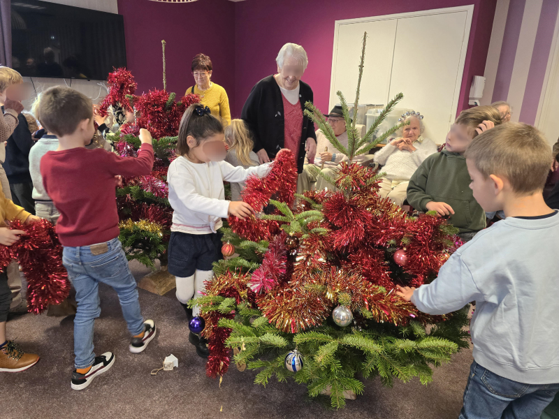 Ce matin, nous avons vécu un moment chaleureux, rempli de sourires et de joie de vivre. Les enfants de l'école de Saint-Désir sont venus nous rejoindre pour décorer les sapins, et ensemble, nous avons partagé un vrai temps d’échange intergénérationnel.
