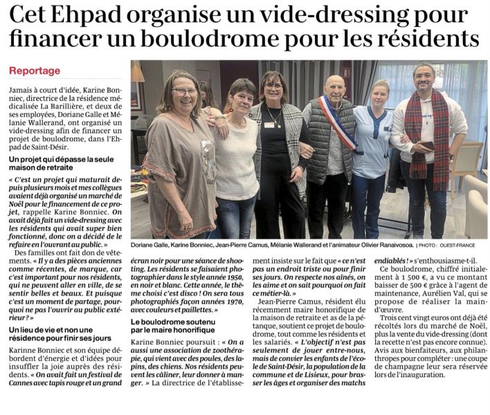 La résidence a récemment été mise à l’honneur dans le Ouest France suite à l’organisation d’un vide-dressing des plus convivial. Cet événement, porté par les résidents et nos équipes, a permis de donner une seconde vie à de nombreux vêtements tout en favorisant les échanges. Une belle initiative qui a rencontré un franc succès et renforcé les liens au sein de la résidence.